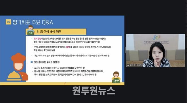 (원투원뉴스) 세종특별자치시육아종합지원센터는 4월 1일, 2 이틀간 관내 어린이집 보육교직원 200명을 대상으로 '2026년 개정 어린이집 평가 지표교육'을 실시간 온라인으로 실시했다.