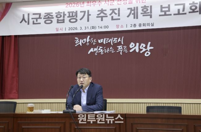 (원투원뉴스) 의왕시는 지난 최근 시청 중회의실에서 부시장 주재로 ‘2026년 시군종합평가 추진 계획 보고회’를 개최하고, 최우수 시군 선정을 위한 대응 전략 마련에 나섰다.