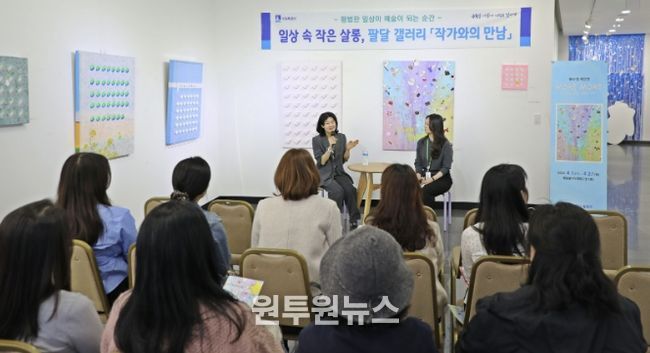 (원투원뉴스) 수원시 팔달구는 지난 4월 2일, 팔달구청 1층 팔달 갤러리에서 4월 전시 작가인 현수영 작가를 초청하여 지역 주민들과 함께 소통하는 ‘작가와의 만남’ 행사를 개최했다고 밝혔다.