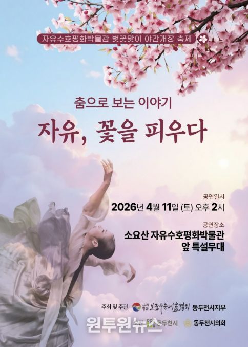 (원투원뉴스) 동두천시는 벚꽃 축제 기간을 맞아 오는 4월 11일 오후 2시, 자유수호평화박물관 야외무대에서 ‘자유수호평화공연’을 개최한다.