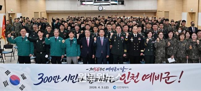 (원투원뉴스) 인천광역시는 4월 3일 시청 대회의실에서 ‘제58주년 예비군의 날’ 기념행사를 개최하고, 지역 방위의 핵심이자 시민 안전의 파수꾼인 예비군과 군 관계자들의 노고를 격려했다.