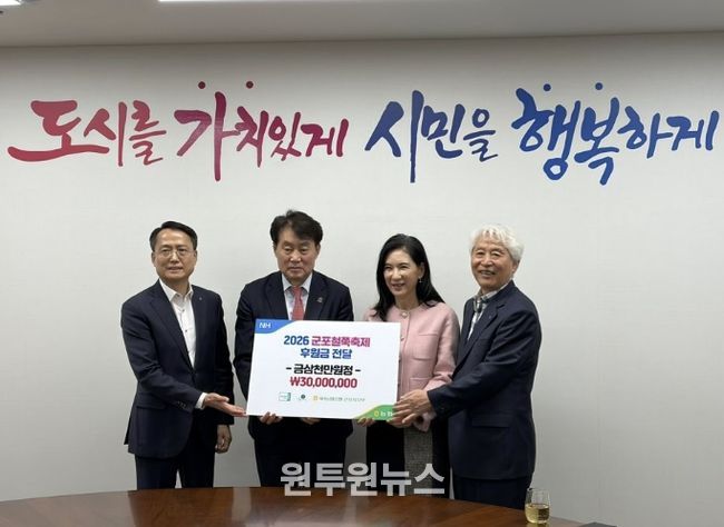 (원투원뉴스) NH농협 군포시지부가 2026년 제12회 군포철쭉축제의 성공적인 운영을 위해 기부금 3천만원을 전달했다.