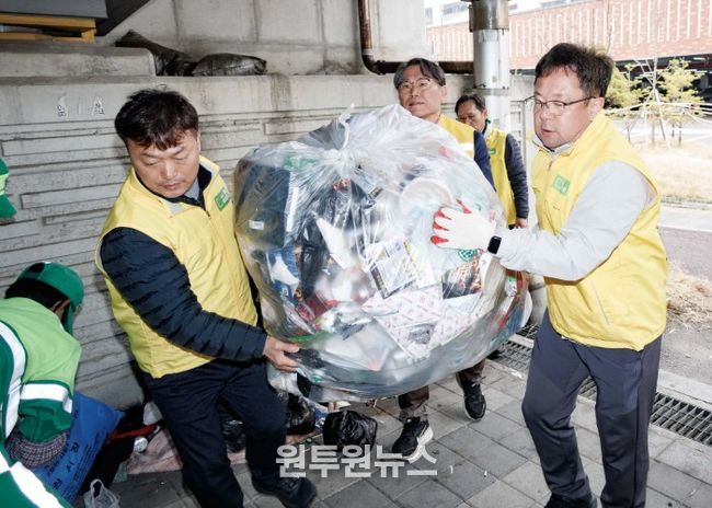 김현수 제1부시장을 비롯한 수원시 공직자, 유관기관 관계자들이 합동으로 정비 활동을 했다.