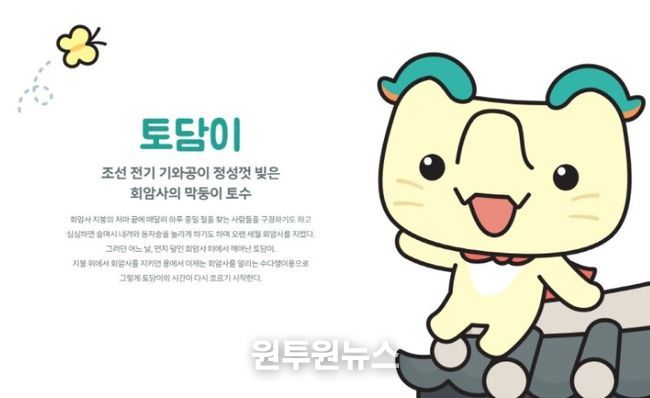 (원투원뉴스) 양주시가 회암사지의 역사와 문화를 친근하게 전달하기 위한 신규 캐릭터 ‘토담이’를 선보이며 콘텐츠 기반 관광 활성화에 나선다.