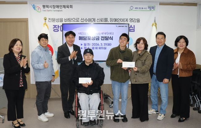 (원투원뉴스) 평택시장애인체육회는 지난 1일 강원특별자치도 일원에서 개최된 ‘제23회 전국장애인동계체육대회’에서 우수한 성적으로 시의 위상을 높인 선수들을 대상으로 메달 포상금 전달식을 진행했다.