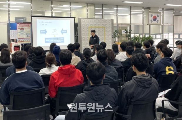 (원투원뉴스) 광주광역시체육회는 지난 3일 광주스포츠과학원에서 스포츠 전공 대학생들을 대상으로 진로·직업체험 프로그램을 운영했다고 밝혔다.