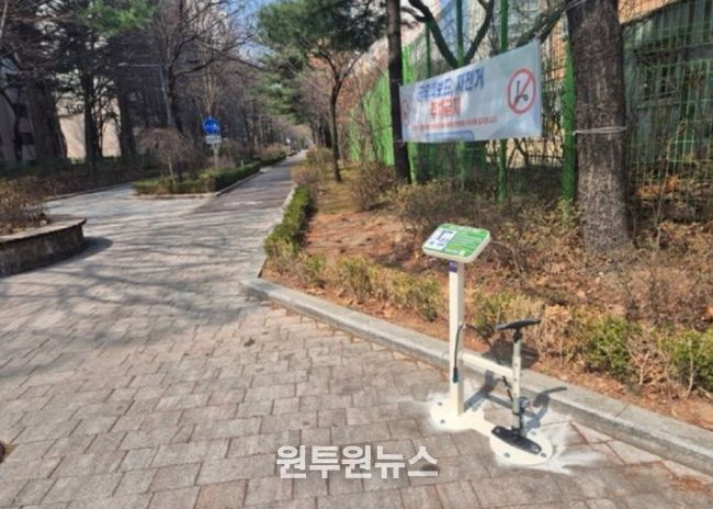 (원투원뉴스) 고양특례시 일산서구는 자전거 이용 활성화와 이용자 편의 증진을 위해 통학로 주변에 자전거 공기주입기를 확대 설치했다고 3일 밝혔다.