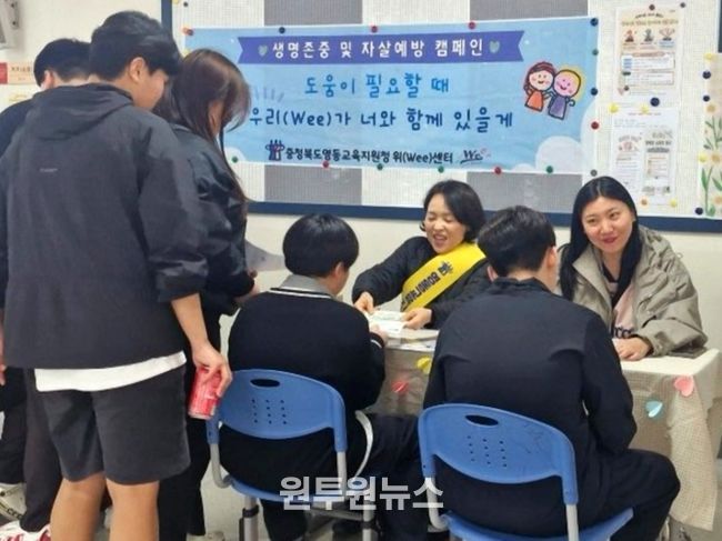 (원투원뉴스) 영동교육지원청 위(Wee)센터는 3일, 새너울중학교에서 전교생이 참여하는 체험형 ‘상반기 생명지킴 및 생명존중문화 조성 캠페인’을 운영했다.