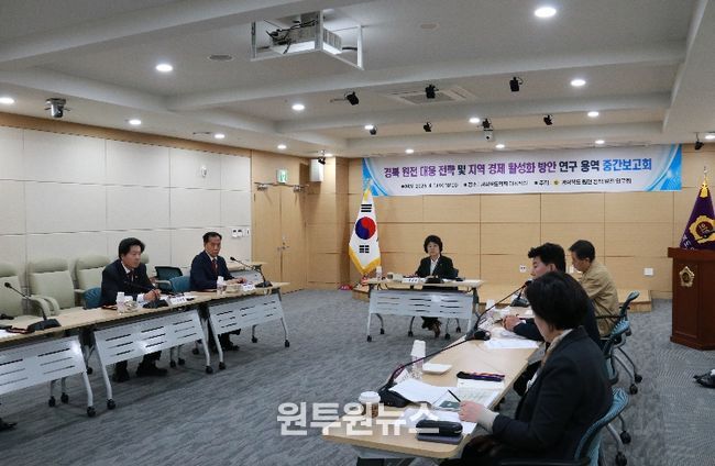 (원투원뉴스) 경북도의회 의원연구단체인'경상북도 원전 정책 발전연구회'(대표 황명강 의원)는 4월 1일 경북도의회 다목적실에서 ‘경북 원전 대응 전략 및 지역경제 활성화 방안’ 연구용역 중간보고회를 개최했다.