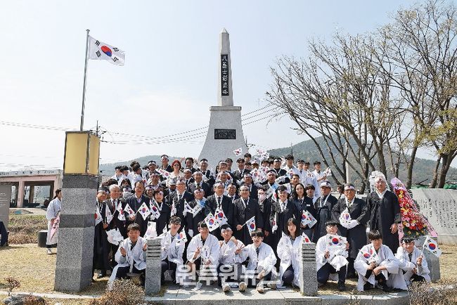 특히 이날 행사에는 지역 학생 75명이 대형 태극기 퍼레이드에 주도적으로 참여해 눈길을 끌었다. 팔의사를 선두로 학생들이 대형 태극기를 맞잡고 창의탑까지 만세를 외치며 행진하는 퍼포먼스를 선보였다. 미래 세대가 107년 전 그날의 뜨거운 함성을 생생히 재현해 내며 참석자들에게 큰 감동을 선사했다.