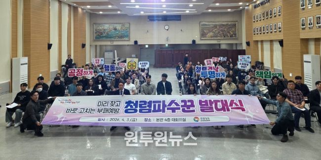 (원투원뉴스) 경상남도는 3일 오후 2시 도청 대회의실에서 본청과 직속기관·사업소 청렴 담당자 등 140여 명이 참석한 가운데 ‘2026년 청렴 파수꾼 발대식’을 개최하고, 관련 교육을 실시했다.