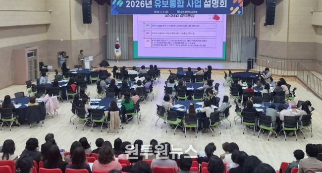 (원투원뉴스) 광주시교육청은 3일 광주AI교육원 대강당에서 유치원 및 어린이집 원장 250여 명을 대상으로 ‘2026 유보통합 사업 설명회’를 개최했다.