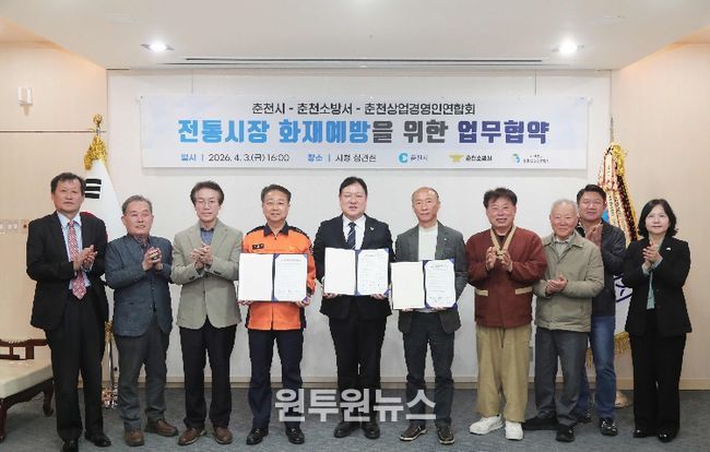 춘천시는 3일 시청 접견실에서 춘천소방서, (사)춘천상업경영인연합회와 전통시장 화재예방 업무협약을 체결했다.