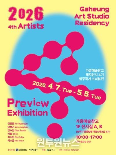(원투원뉴스) 충주문화관광재단은 4월 7일부터 5월 5일까지 가흥예술창고에서『2026 가흥예술창고 레지던시 4기 입주작가 프리뷰전』을 개최한다고 밝혔다.