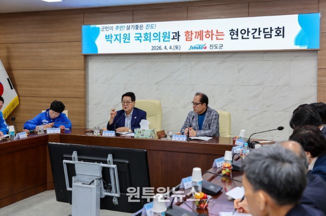 [20260405103709-70902](원투원뉴스) 진도군은 4일 진도군청 회의실에서 박지원 국회의원과 함께하는 현안 간담회를 개최했다.