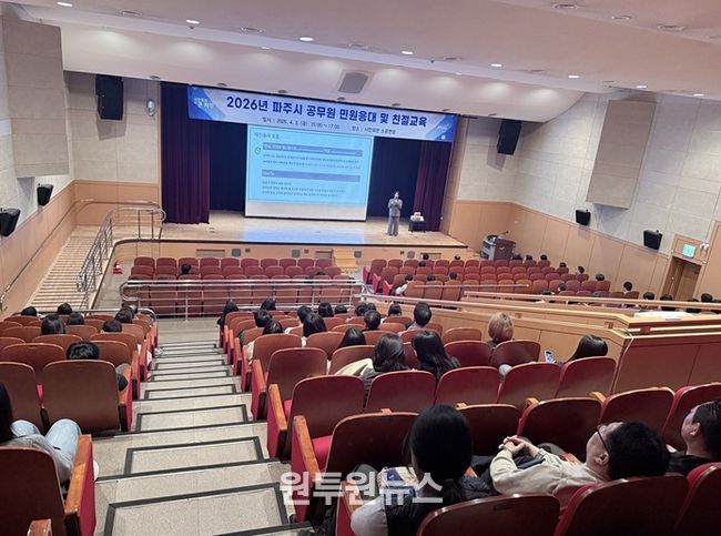 (원투원뉴스) 파주시는 지난 3일 파주시민회관 소공연장에서 민원 담당 공무원 220명을 대상으로 민원 응대 역량 강화를 위한 녪년 파주시 공무원 민원응대 및 친절교육’을 실시했다.