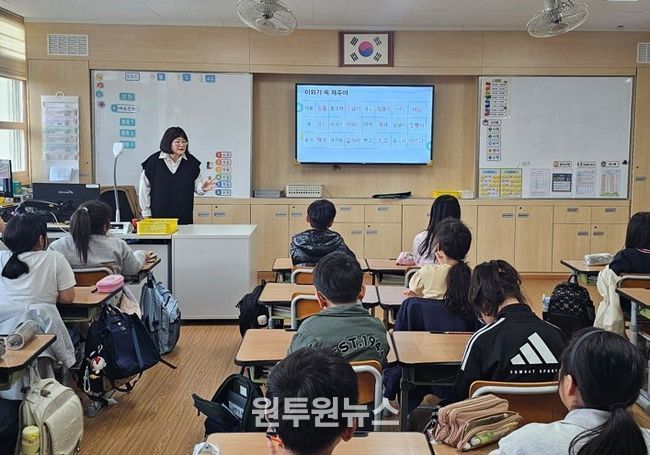 이번 프로그램은 이은주 제주어 강사의 지도로 3일 서귀서초등학교 3학년들을 대상으로 ‘마법의 낱말 딱지’ 그림책을 활용한 첫 수업을 시작했으며 오는 6월까지 서귀서초 1~3학년을 대상으로 20회에 걸쳐 진행된다.