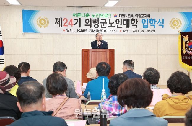 (원투원뉴스) 대한노인회 의령군지회(지회장 장혁두) 부설 제24기 의령군노인대학(학장 하만용) 입학식이 3일 의령노인복지관 3층에서 오태완 군수와 김규찬 의령군의회의장을 비롯한 기관단체장과 60명의 신입생이 참석한 가운데 거행됐다.