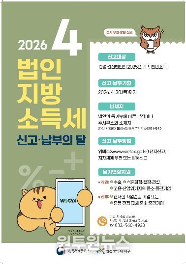 (원투원뉴스) 인천시 서구는 2025년 귀속 법인지방소득세 집중신고 기간을 4월 30일까지 운영한다고 밝혔다.