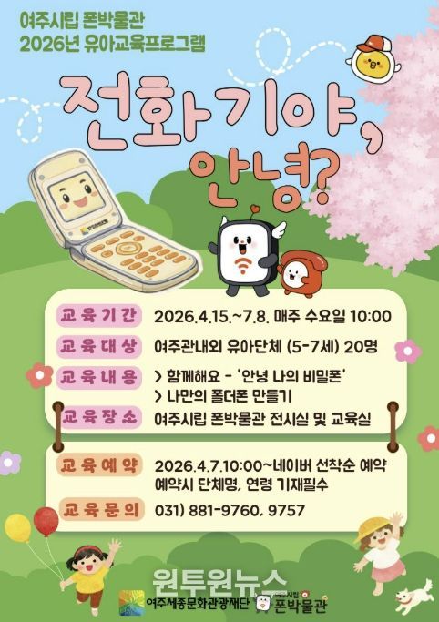 (원투원뉴스) 여주세종문화관광재단이 운영하는 여주시립 폰박물관은 유아들의 호기심과 탐구를 마음껏 펼칠 수 있는 체험형 프로그램 '전화기야, 안녕?'을