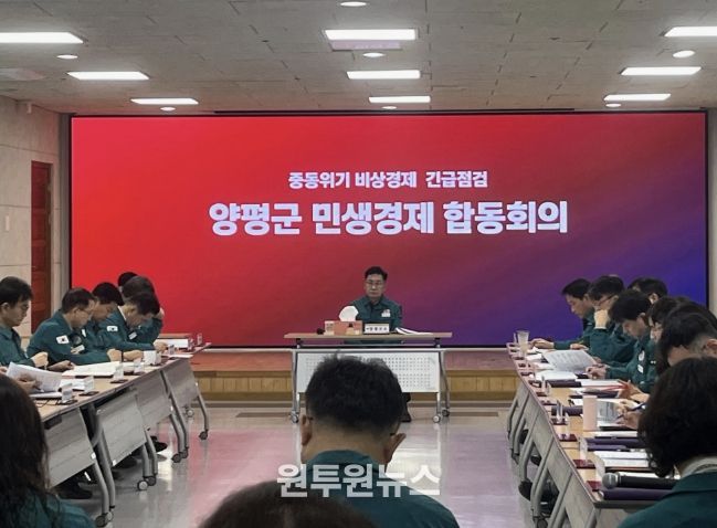 (원투원뉴스) 양평군은 최근 중동 정세 불안에 따른 대외 경제의 불확실성이 심화됨에 따라 ‘중동위기 대응 비상경제 TF’를 구성하고, 6일 오전 군청 대회의실에서 민생경제 합동회의를 개최하여 민생경제 안정과 물가 관리를 위한 본격적인 행보에 나섰다.