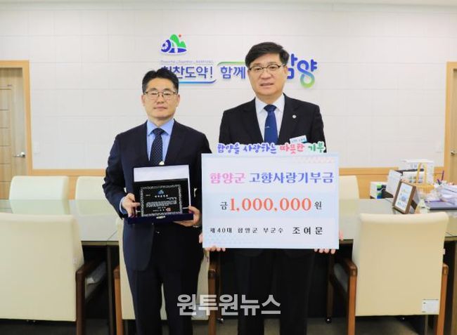 (원투원뉴스) 함양군은 제40대 조여문 전 부군수를 함양군 명예군민으로 위촉하고, 고향사랑기부금 100만 원을 기탁받았다고 밝혔다.