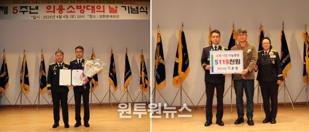 이날 기념식에 앞서 천안시민 기호중씨의 소방나눔 후원 행사도 가졌다. 천안시 서북구 성환읍에 거주하며 어려움에 처한 이웃을 도와 온 기호중씨는, 무보수로 활동하는 의용소방대원들의 이웃 사랑 실천에 감동하여 의용소방대 발전에 쓰라며 5119천원을 후원했다.