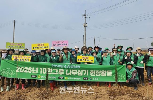 (원투원뉴스) 나주시새마을회가 탄소흡수원 확충과 기후 위기 대응을 위한 나무심기 행사를 추진하며 ‘2050 탄소중립’ 실현을 위한 생활 속 실천 확산에 나섰다.