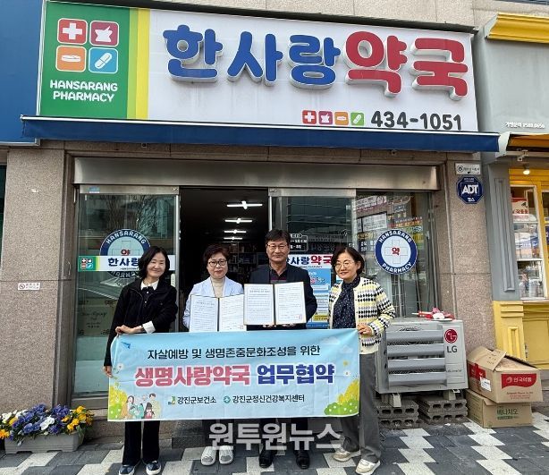 (원투원뉴스) 강진군이 지역사회 자살예방과 생명 존중 문화 확산을 위해 관내 약국 6개소와 ‘생명사랑약국’ 운영을 위한 업무 협약을 추가로 체결하여 촘촘한 생명 안전망 구축에 나섰다.