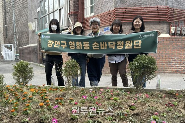 (원투원뉴스) 수원시 장안구 영화동 마을만들기협의회는 지난 6일, 관내 손바닥 정원 중 하나인 ‘골목쉼터정원’에서 새봄맞이 환경 정비와 꽃 심기 활동을 펼쳤다.