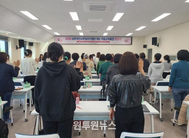 (원투원뉴스) 남원시 여성새로일하기센터에서는 미취업 여성의 취업역량 강화를 위해 '역량 기반 AI·SW 전문강사 양성 과정'과 '정리수납 컨설턴트 창업 과정' 35명을 대상으로 4월 7일 개강식을 동시 개최했다.