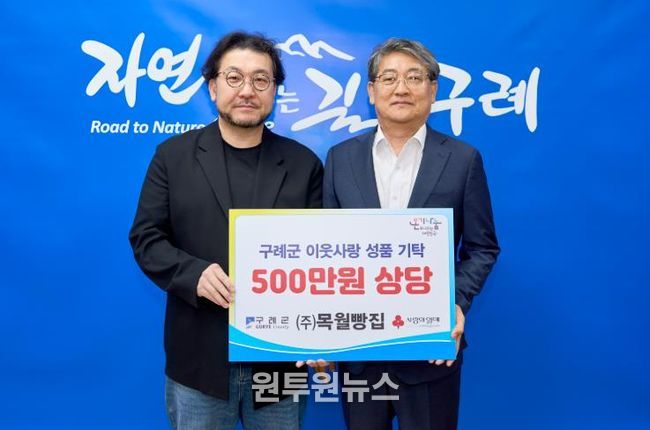 (원투원뉴스) 전남 구례군은 지난 6일 ㈜목월빵집에서 지역 내 취약계층 지원을 위한 500만 원 상당의 빵을 기부하는 기탁식을 가졌다고 밝혔다.