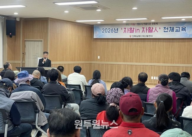 (원투원뉴스) 김제시는 전북김제지역자활센터(센터장 이석규)가 7일, 자활근로사업 참여 주민들의 자립 의지 고취를 위해 ‘지역자활센터 종사자 및 참여자 150명을 대상으로 자활in 자활人' 전체교육을 진행했다고 밝혔다.