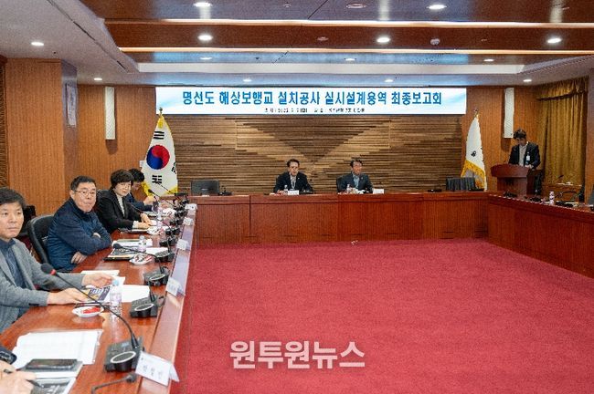 (원투원뉴스) 울산 울주군이 7일 군청 이화홀에서 이순걸 군수와 울주군의회 최길영 의장 및 군의원, 관계 공무원들이 참석한 가운데 ‘명선도 해상보행교 설치 기본구상용역’ 최종보고회를 개최했다.