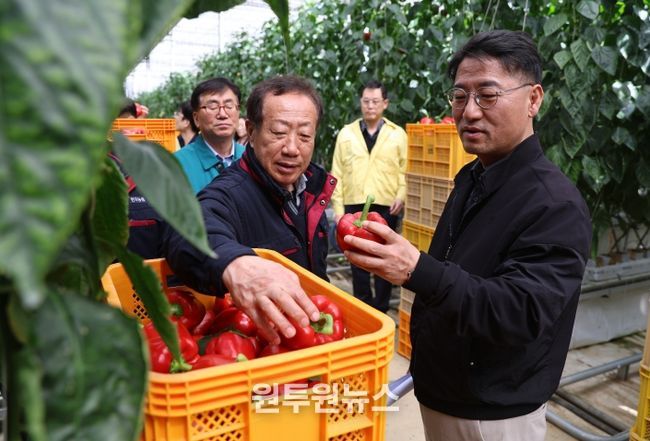 (원투원뉴스) 박정훈 농림축산식품부 식량정책실장은 4월 7일 최근 중동 상황에 따른 국제유가 상승과 농자재 가격 상승으로 어려움을 겪고 있는 경기도 고양시 소재 파프리카 시설원예 농가를 방문하여 생육상황과 영농 여건을 직접 점검하고 현장 애로사항을 청취했다.