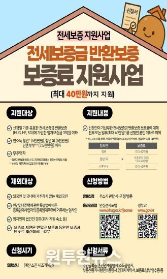 지원대상은 신청일 기준 보증효력이 유효한 전세보증금반환보증 기관(HUG, HF, SGI)보험에 가입한 무주택 임차인이다.