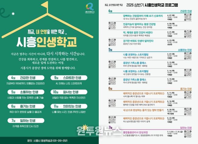 김상동 평생교육원장은 “시흥인생학교는 중장년의 삶 전반을 체계적으로 지원하는 통합형 인생 설계 플랫폼”이라며 “건강 회복에서 시작해 관계 확장, 새로운 도전과 성찰로 이어지는 여정을 통해 중장년 시민들이 스스로 삶의 방향을 설계할 수 있도록 적극 지원하겠다”라고 밝혔다.