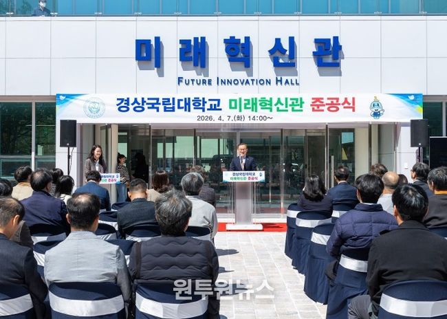 (원투원뉴스) 경상국립대학교는 4월 7일 오후 2시 가좌캠퍼스 미래혁신관 입구 광장에서 ‘미래혁신관 준공식’을 개최했다. 이번 준공식은 2021년 3월 경상대학교와 경남과학기술대학교의 통합 이후 추진된 캠퍼스 이전·재배치 지원사업의 일환으로, 미래혁신관 신축공사의 완료를 기념하기 위해 마련됐다.