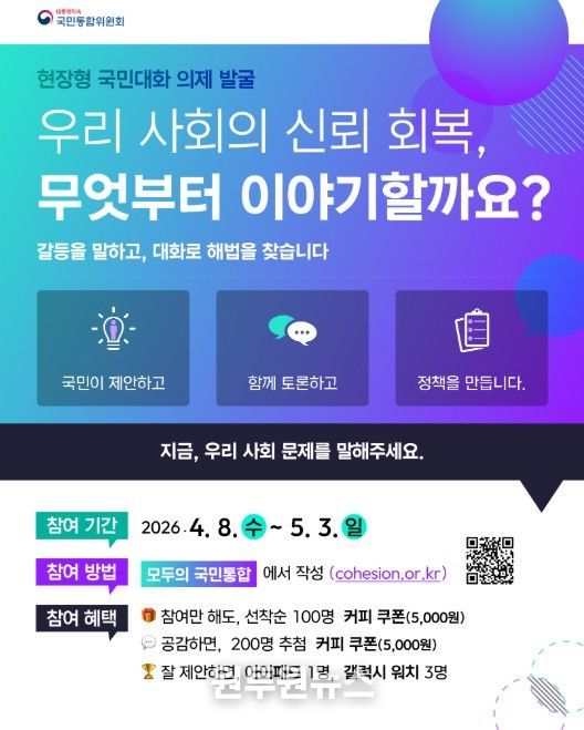 이어 "국민 한 분 한 분의 제안이 국민통합의 씨앗이 되고, 실질적인 정책 변화로 이어질 수 있도록 최선을 다하겠다"고 강조했다.
