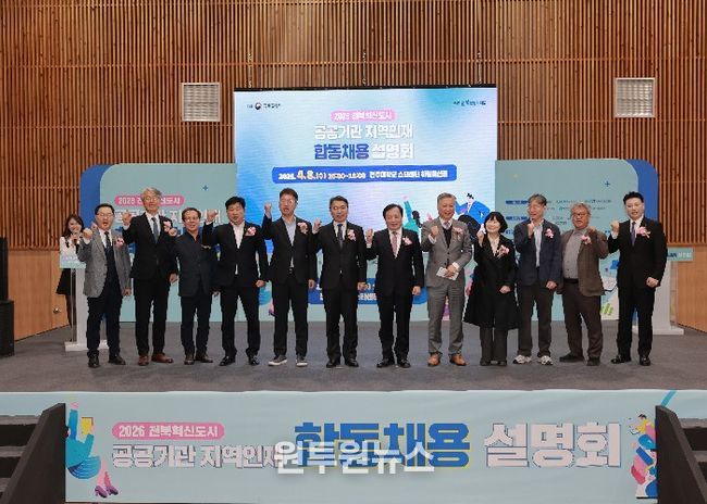 (원투원뉴스) 전북특별자치도는 8일 전주대학교에서 도내 청년들의 취업 기회 확대와 지역인재 채용 활성화를 위한 ‘전북혁신도시 이전공공기관 지역인재 합동채용설명회’가 열렸다고 밝혔다.