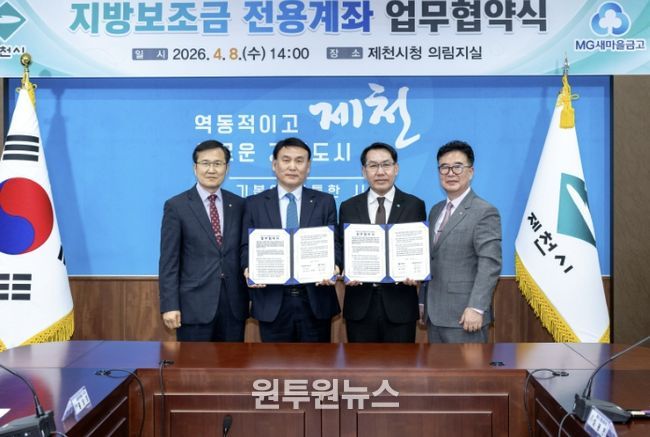 (원투원뉴스) 제천시는 지난 8일 새마을금고와 지방보조금 전용계좌 개설을 위한 업무협약을 체결했다.