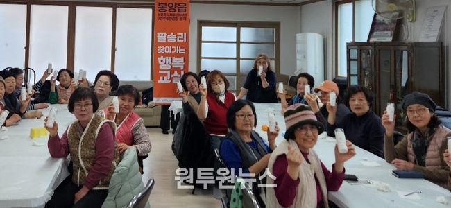 (원투원뉴스) 봉양읍은 농촌중심지활성화사업의 일환으로 추진 중인 ‘찾아가는 행복교실’ 프로그램을 현재 17개소에서 운영하고 있으며, 오는 4월까지 모든 사업을 완료할 계획이라고 밝혔다.