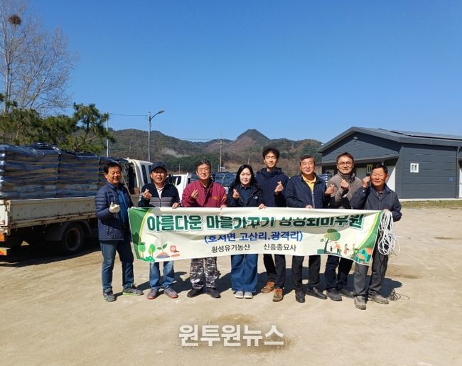 (원투원뉴스) 원주신흥종묘사와 횡성유기농산은 지난 8일, 아름다운 마을가꾸기 지원사업의 원활한 추진을 위해 호저면 고산리와 광격리에 싱싱퇴비 400포를 후원했다. 퇴비는 도로변 화분과 마을 안길 꽃길 조성에 활용될 예정이다.