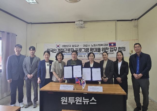 (원투원뉴스) 청도군은 외국인 계절근로자 도입 지역 확대와 안정적인 인력 수급 체계를 구축하기 위해 라오스 노동사회복지부를 방문하여 변경 업무협약(MOU)을 체결하고, 라오스 현지에서 계절근로자 선발 과정에 직접 참여하여 최종 면접을 실시했다고 7일 밝혔다.