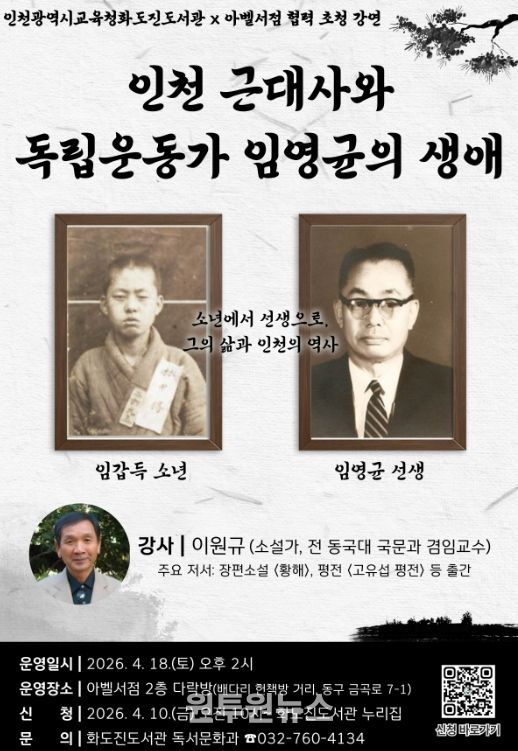 (원투원뉴스) 인천시교육청화도진도서관은 오는 18일 지역 협력 서점인 '아벨서점'에서 ‘인천 근대사와 독립운동가 임영균의 생애’ 강연을 개최한다.