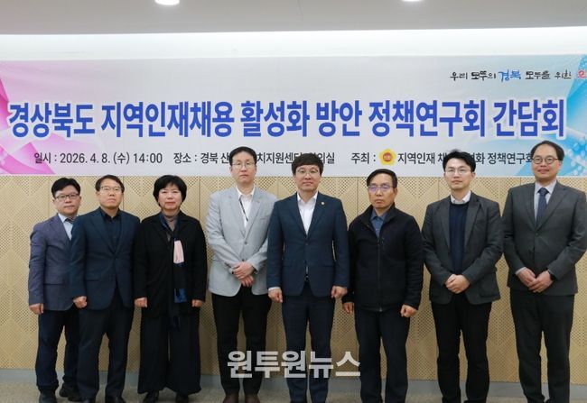 (원투원뉴스) 경상북도의회 '지역인재채용 활성화 정책 연구회'(대표 조용진 의원)는 4월 8일 경북 산학연 유치지원센터 회의실에서 ‘지역인재채용 활성화 정책연구회 간담회’를 개최했다.