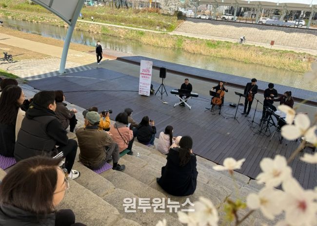 특히 이번 2026년 벚꽃코스에서는 평택의 대표 벚꽃명소인 통복천변에서 ‘인트리 앙상블’의 특별공연이 펼쳐져, 만개한 벚꽃 아래에서 음악을 감상하는 이색적인 시간을 선사했다. 참가자들은 화창한 봄날, 벚꽃과 어우러진 자연 속에서 공연을 즐기며 일상에서 벗어난 여유와 감동을 만끽했다.