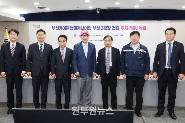 (원투원뉴스) 부산시는 9일 오전 11시 시청 영상회의실에서 화통케이블그룹의 자회사인 부산케이블앤엔지니어링의 산업용 특수케이블 생산 시설 건립을 위한 투자양해각서(MOU)를 체결한다고 밝혔다.