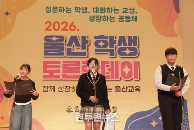 (원투원뉴스) 울산광역시교육청은 9일 본청 대강당에서 ‘울산 학생 토론한 데이(Day)’ 선포식을 열고, 학생 중심의 토론 문화 확산을 위한 정책을 본격적으로 추진한다.