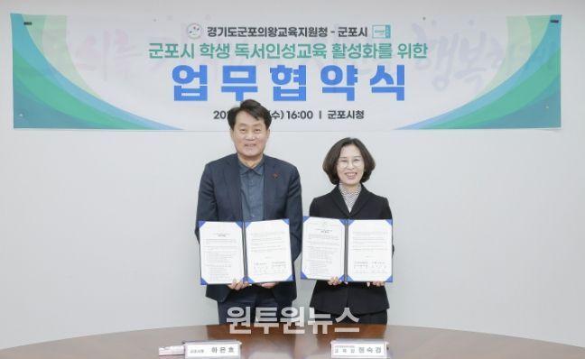 이 협약은 지역 내 학생들의 독서문화 확산과 인성 함양을 목표로, 기관 간 협력체계를 강화하기 위해 마련됐으며, 협약에 따라 군포시는 ▲독서인성교육 프로그램 공동 기획 및 운영, ▲중앙도서관 공간과 도서 및 인력 지원, ▲독서교육 관련 정보 및 성과 공유, ▲지역 독서생태계 확산을 위한 협력 등을 추진한다.